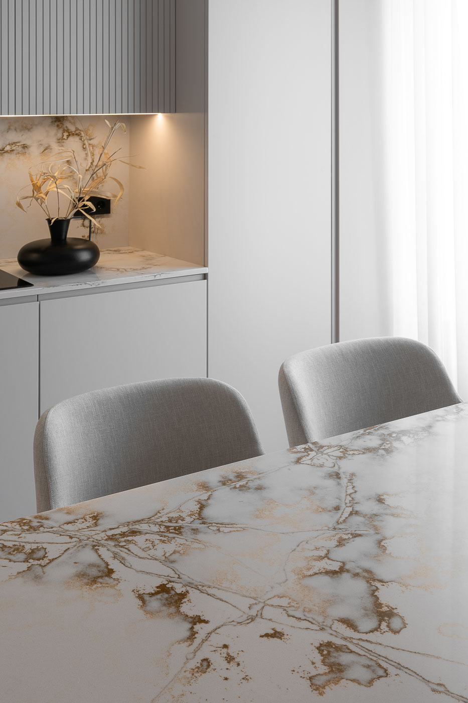 Un apartament ce redefinește minimalismul prin texturi tactile și nuanțe calde. Mobilierul Still Ferro se integrează perfect în ambientul moale și armonios. Fiecare piesă contribuie la crearea unei atmosfere de calm, echilibru și design coerent.