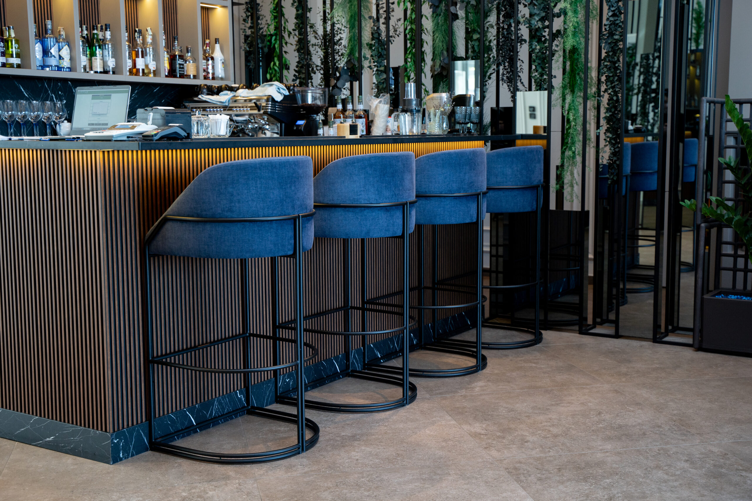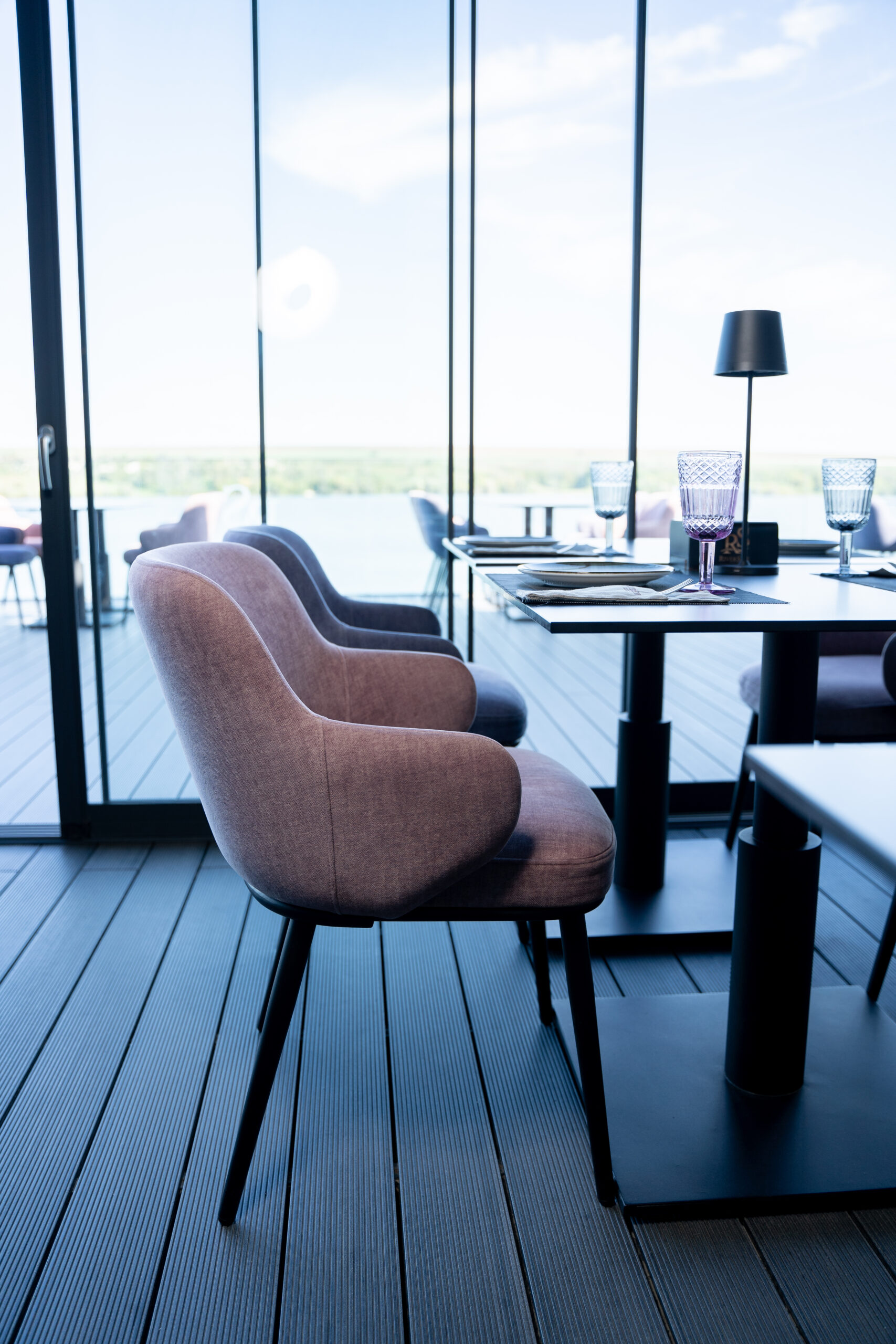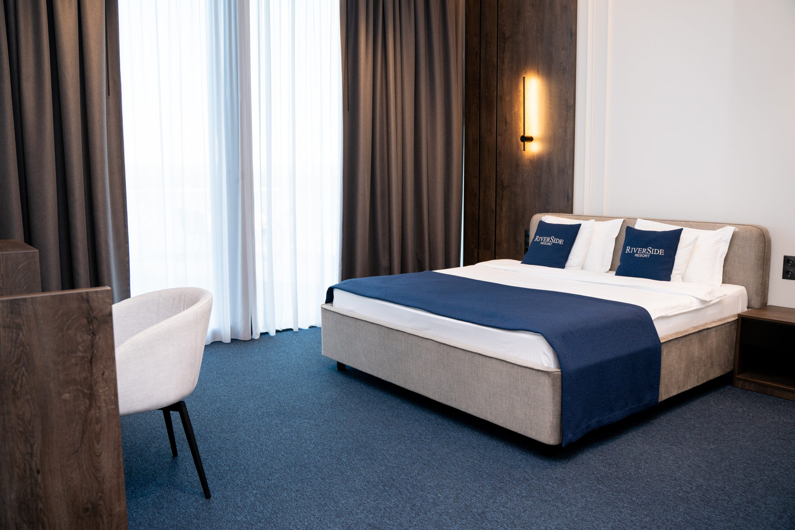 Proiectul de amenajare interioară pentru RiverSide Resort Hotel include soluții de mobilier pentru camere, zona de restaurant, bar și spațiul de vinuri. Piesele de mobilier Still Ferro accentuează stilul premium minimalist al hotelului și se integrează armonios în spațiul cu vedere panoramică la râu.