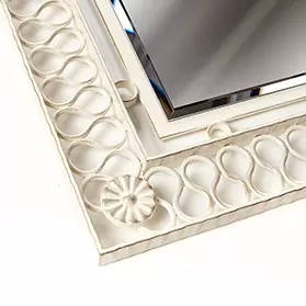 Rama din metal, poate fi vopsita intr-o gama variata de culori. Oglinda poate fi extraclear sau tonata.